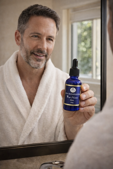 A botanical skin serum derived from nature: Pour Homme Elixir is a true natural skin food for men.